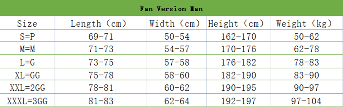 -XXL: Length 84cm Bust 60cm Height 185-190cm Weight 85-100kg
